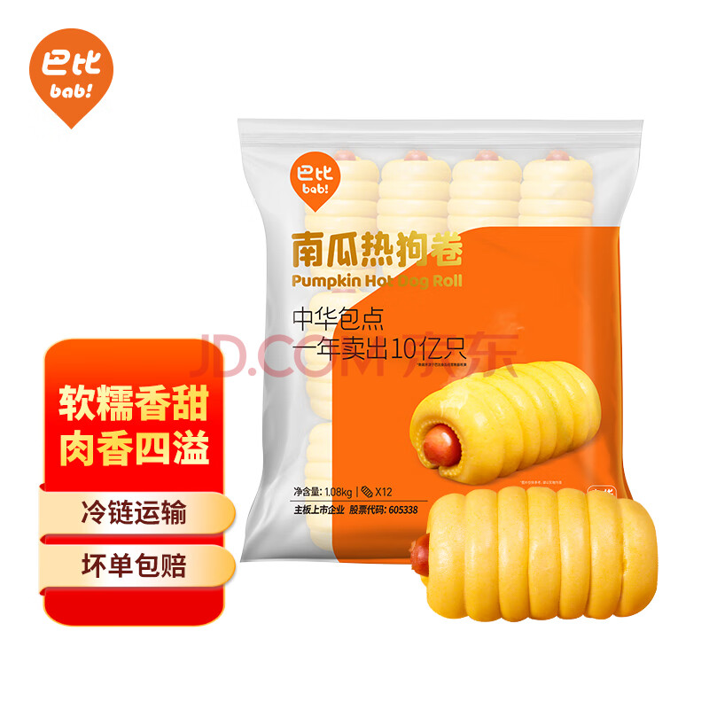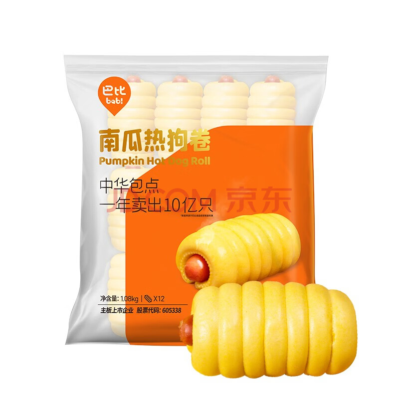 商品相册:巴比南瓜热狗卷 1080g 12只 早餐包子馒头花卷生鲜面点速食半成品速冻第