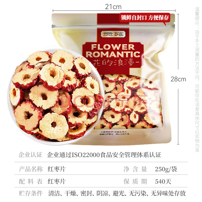 商品相册:贡苑花草茶 免洗新疆大枣原味红枣片250g干吃枣片无核无添加养生茶第