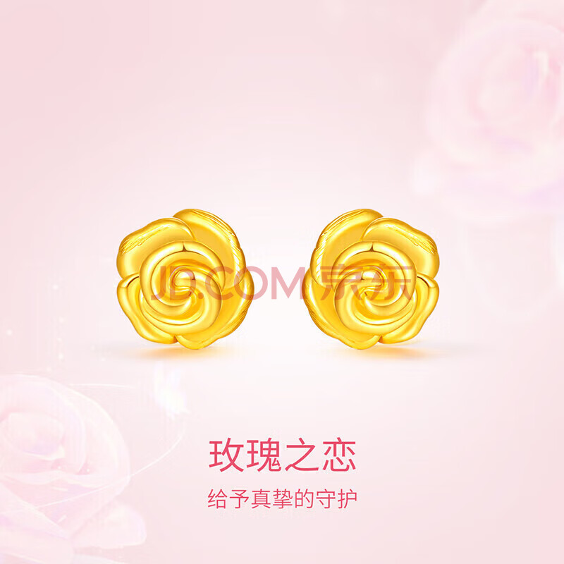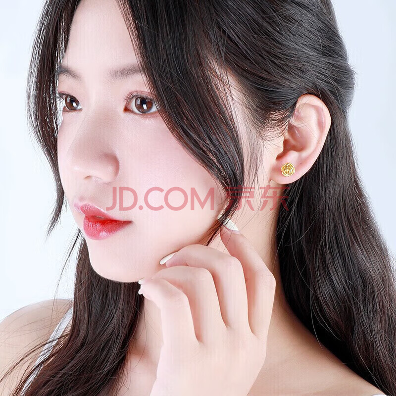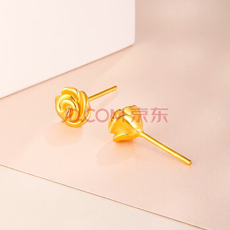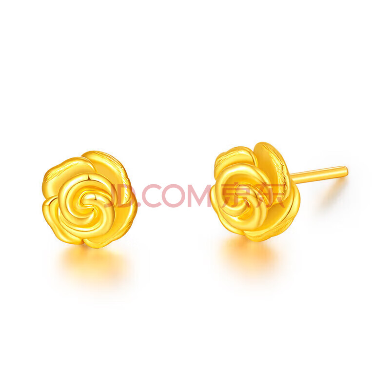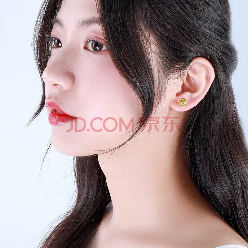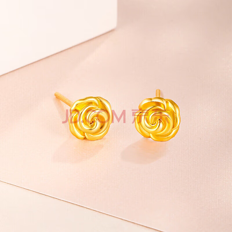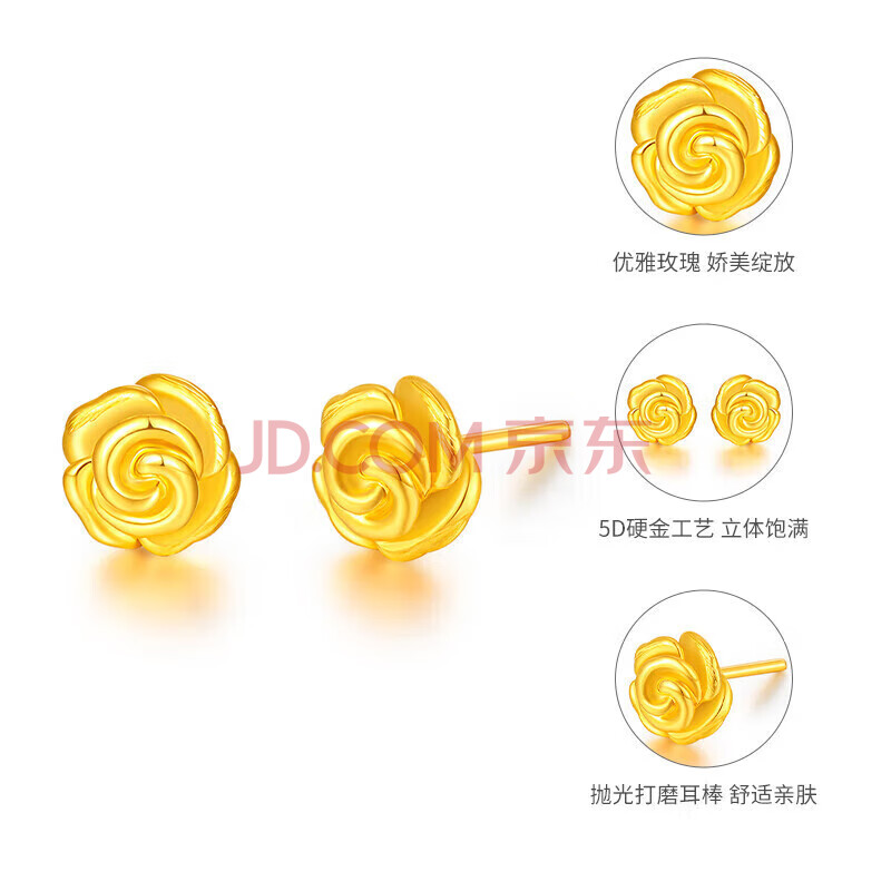 商品相册:梦金园黄金耳钉玫瑰花足金养耳棒花漾5D硬金耳环耳饰第