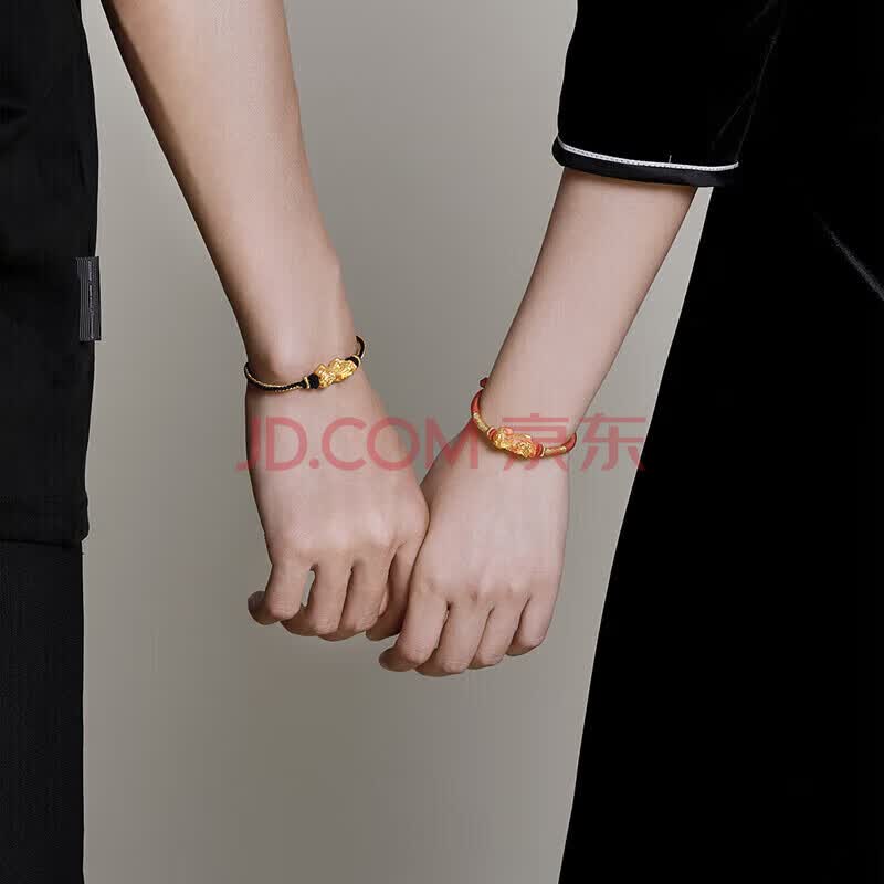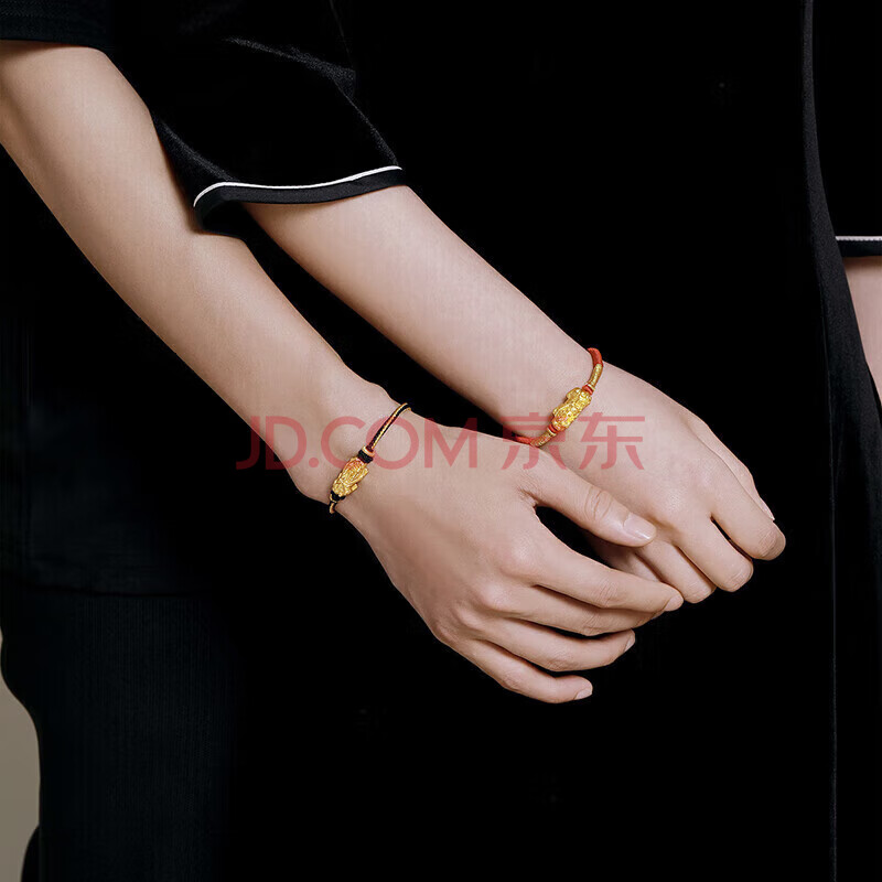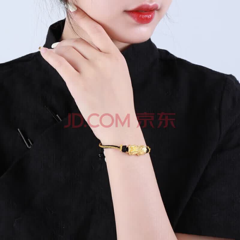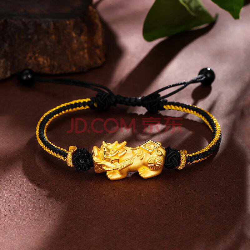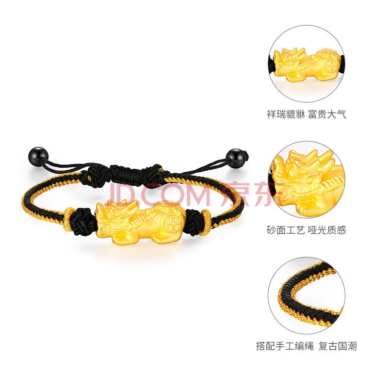 商品相册:梦金园黄金转运珠足金3D硬金福字貔貅路路通手链手绳母亲节礼物第
