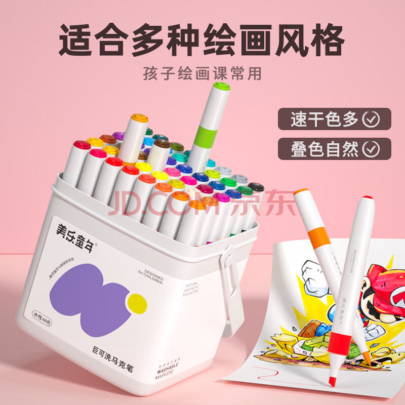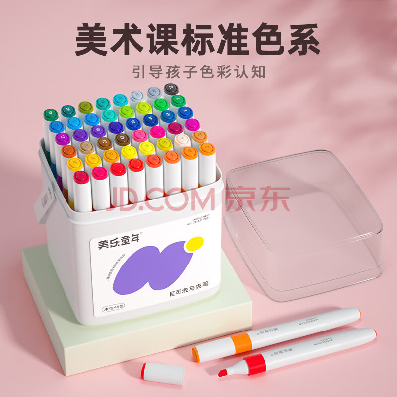 商品相册:美乐童年水性马克笔水彩笔画笔48色无毒双头可水洗男孩女孩生日礼物礼盒第