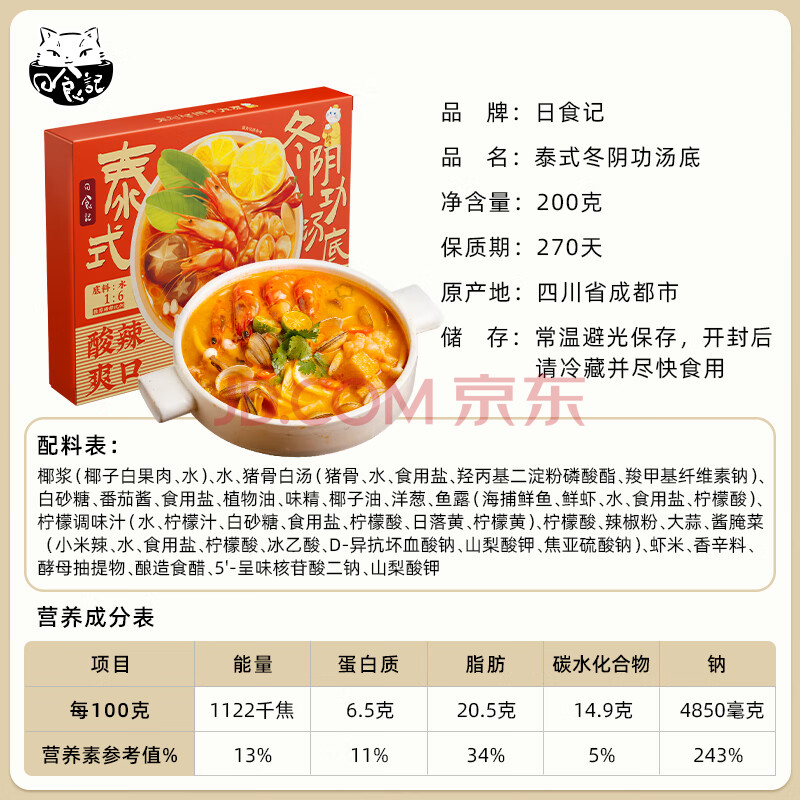 商品相册:日食记火锅底料200g泰式椰香冬阴功汤料酸辣汤酱包关东煮汤料海鲜调料包第