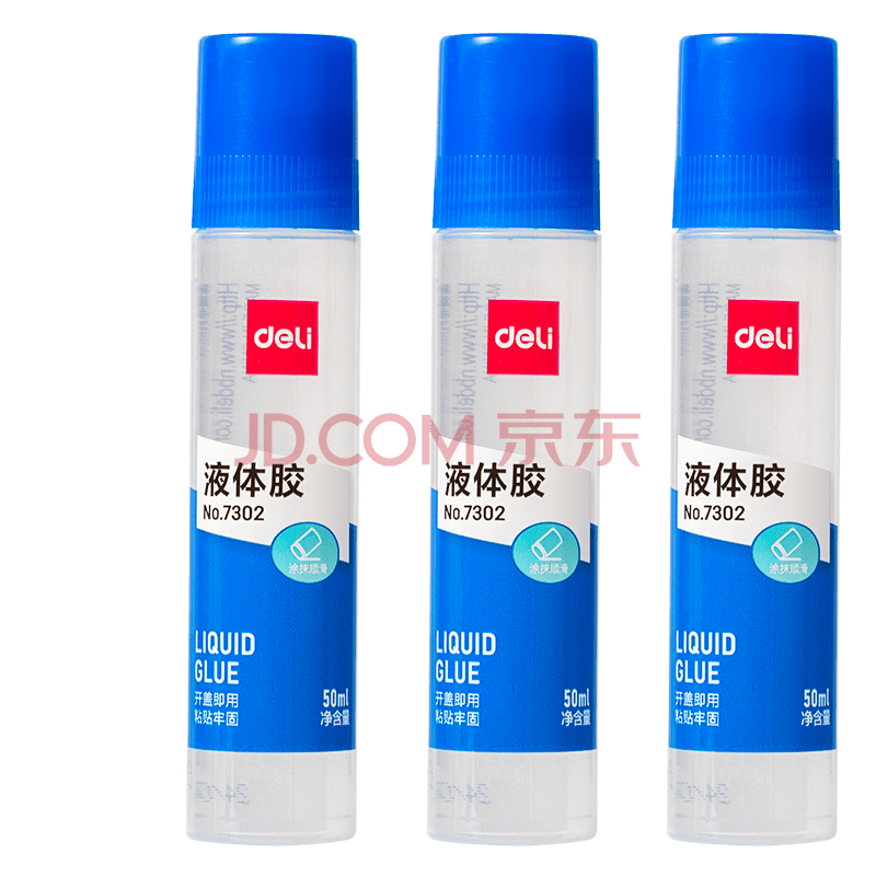 商品相册:得力50ml高透明胶水 可水洗高粘液体胶 手工DIY学生文具 开学必备学习用品 单支凑单 办公用品 7302第