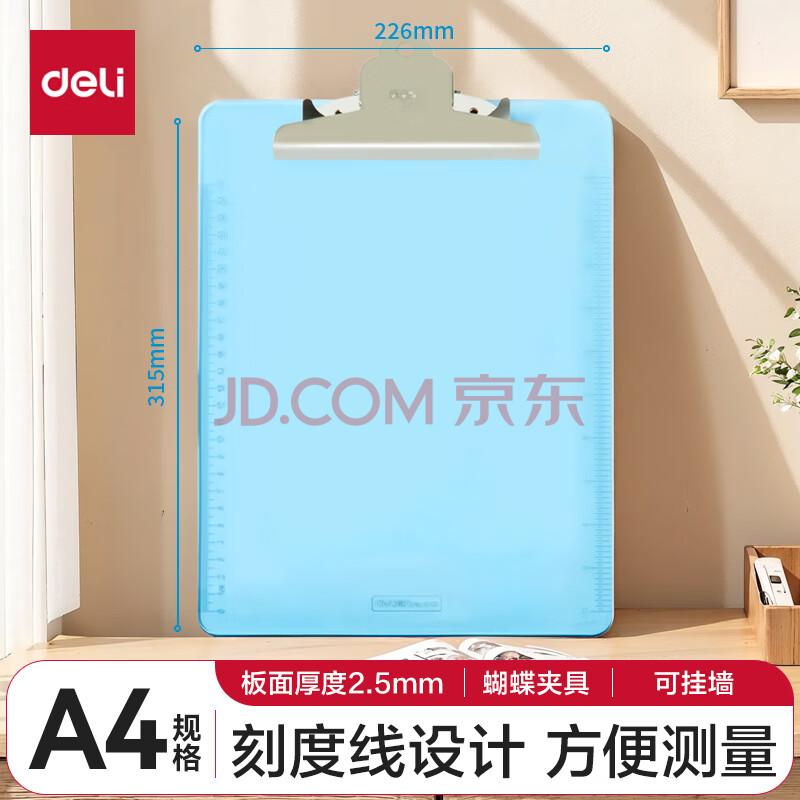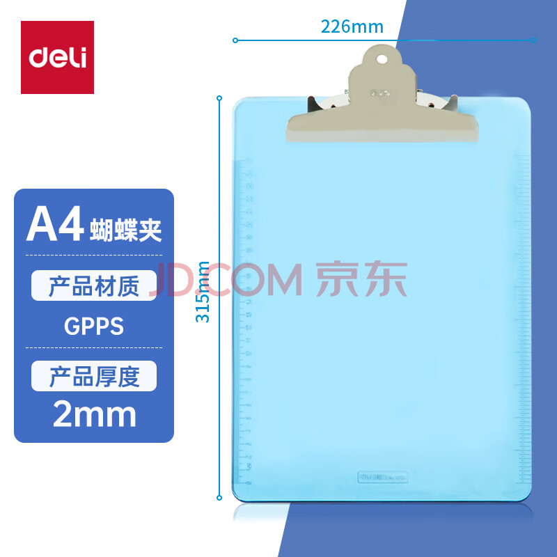 商品相册:得力(deli)A4透明商务书写板夹 写生便携写板夹/写字垫板/试卷资料收纳夹 蓝9252第