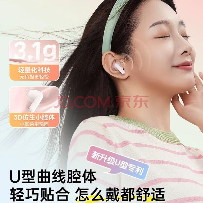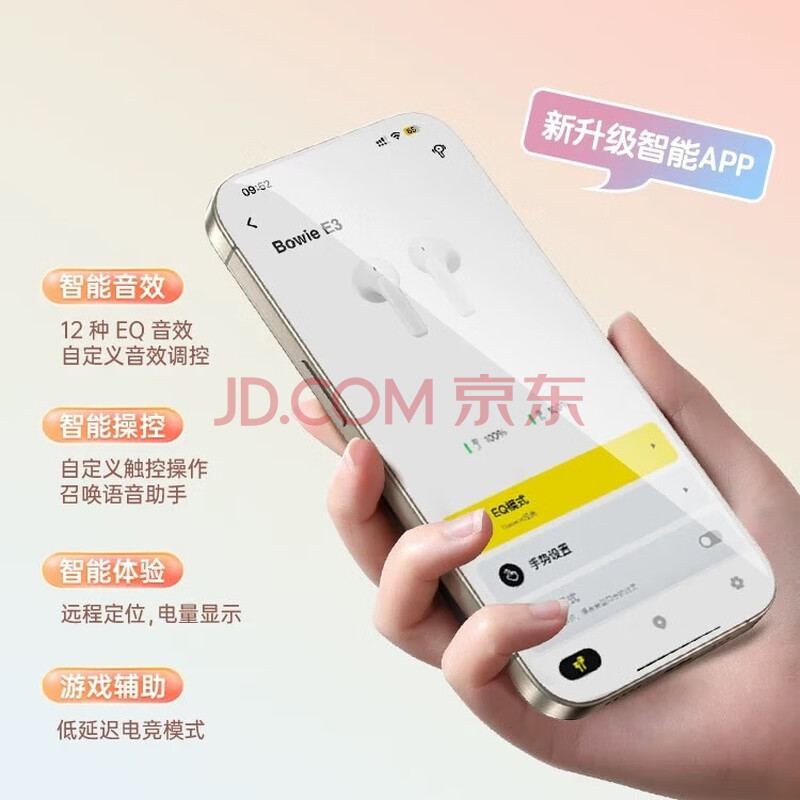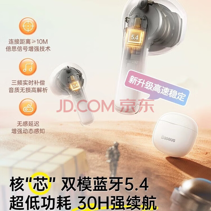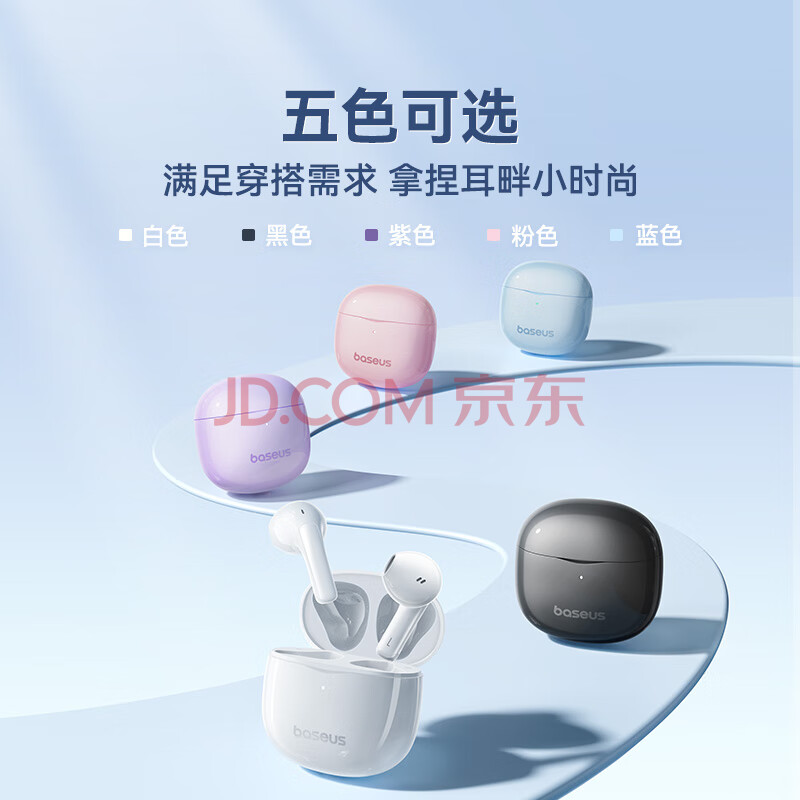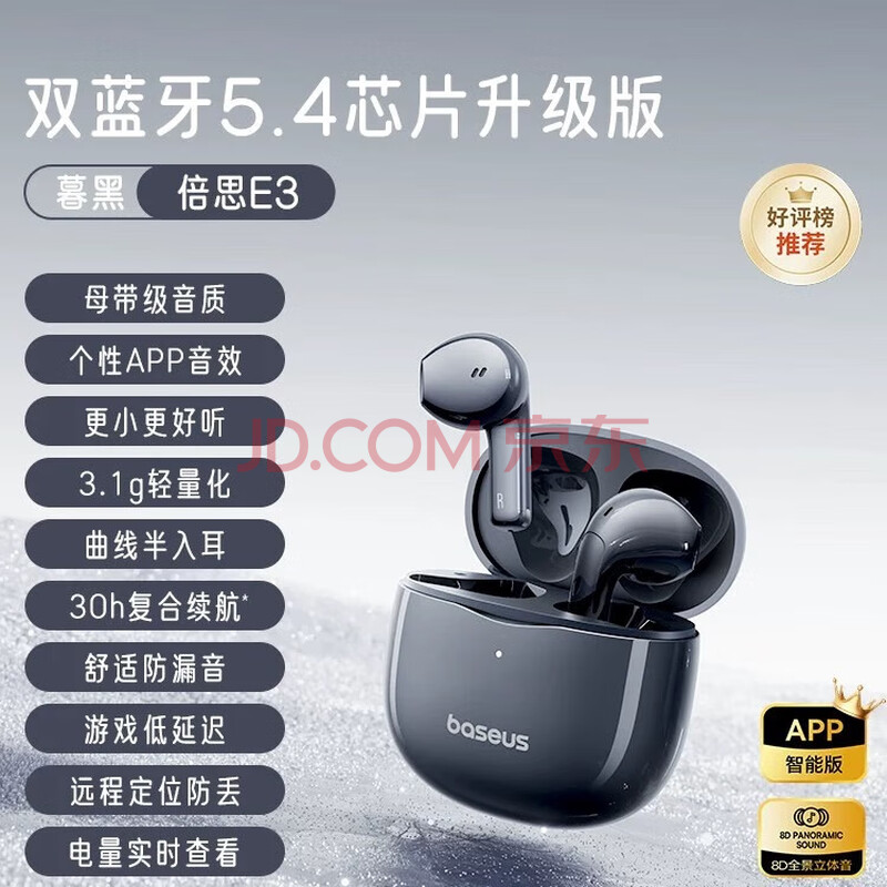 商品相册:倍思E3 半入耳真无线耳机 佩戴舒适蓝牙5.4音乐运动耳机低延迟适用于苹果华为vivo荣耀oppo手机礼物第