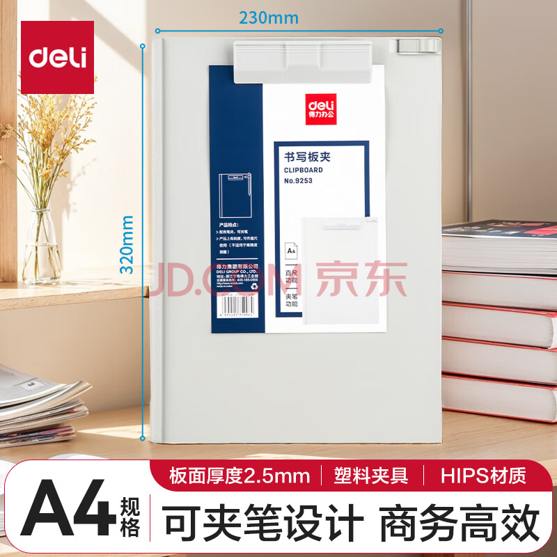 商品相册:得力(deli)A4带笔商务便携夹书写板夹菜单菜谱夹试卷资料收纳夹 单只 颜色随机 办公用品第