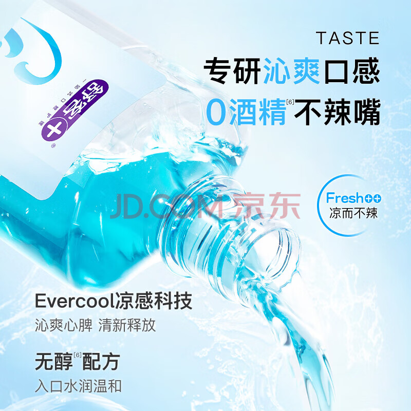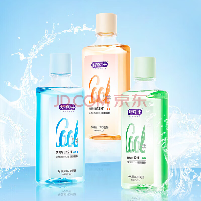 商品相册:舒客沁爽漱口水 清新口气温和不辣0酒精深层清洁去口臭茶爽500ml*1瓶第