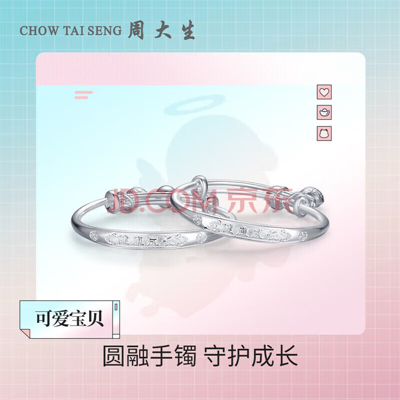 商品相册:周大生足银手镯婴儿宝宝银镯子百天新生儿童小孩子周岁满月礼物 约22g第