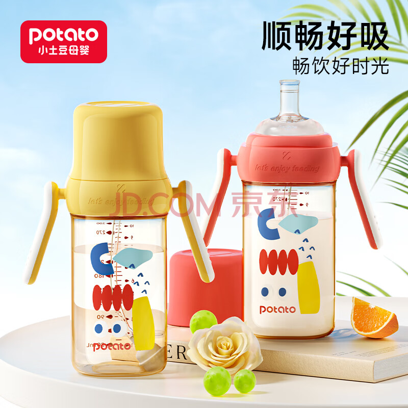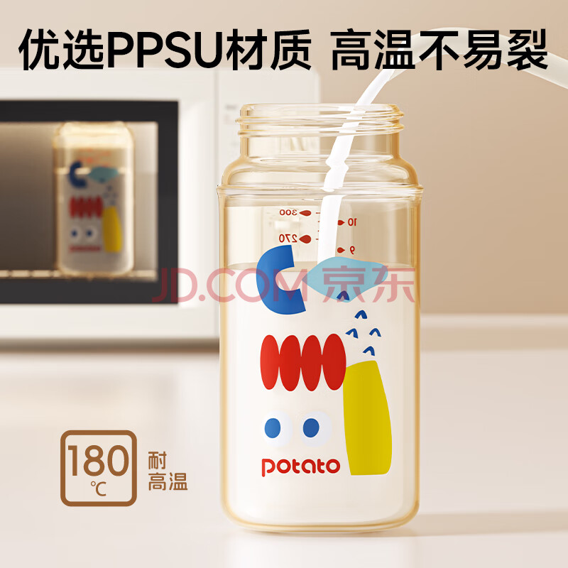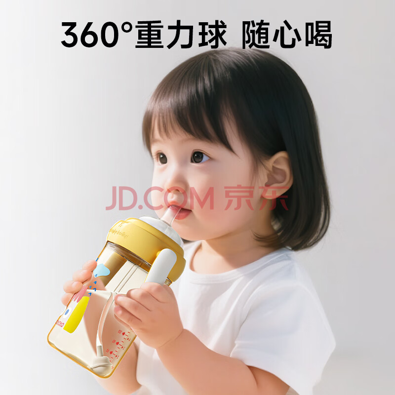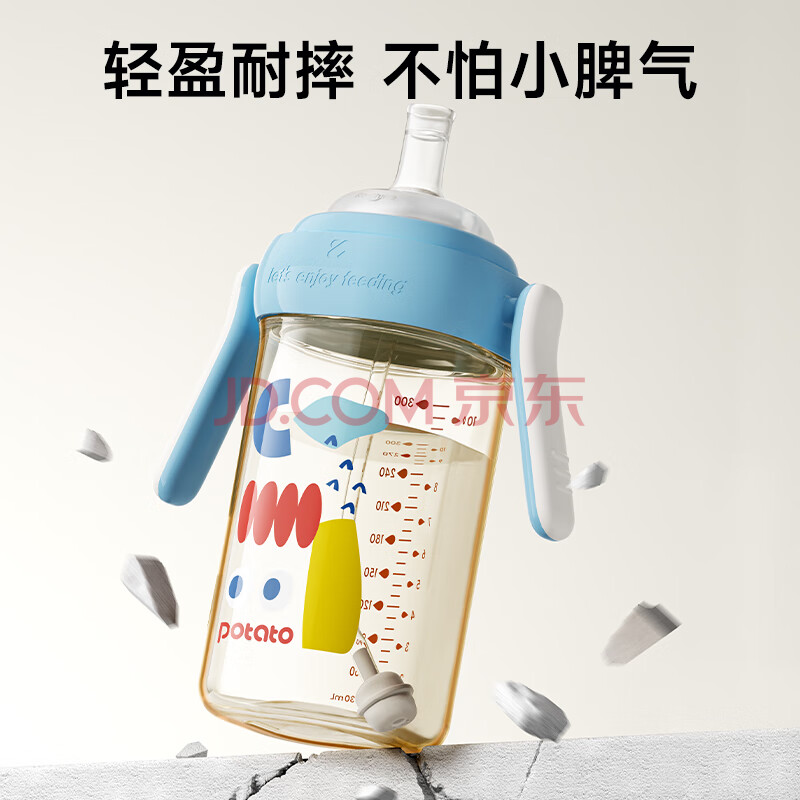 商品相册:小土豆(potato)儿童水杯吸管婴儿1-2岁以上ppsu断奶耐摔带重力球 300ml蔷薇红第