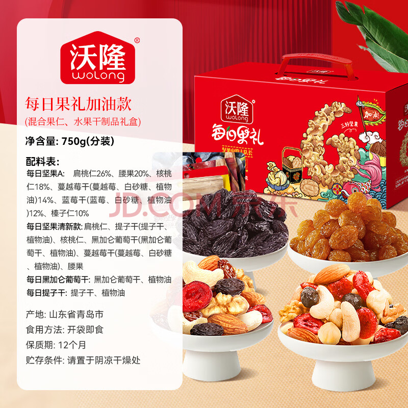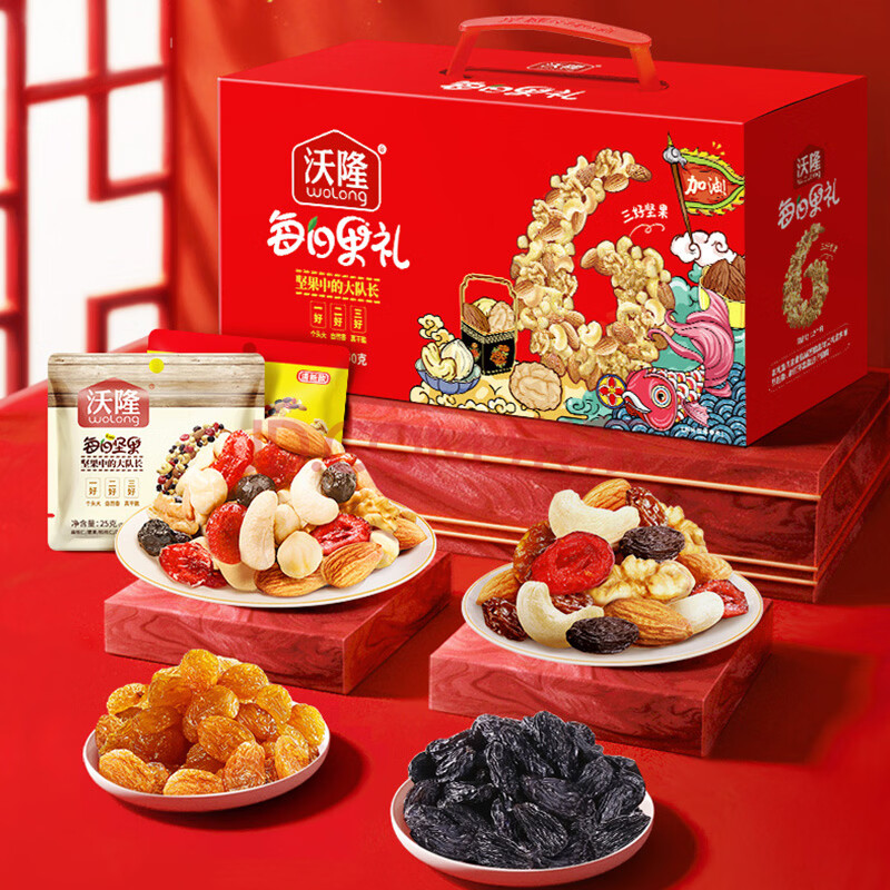 商品相册:沃隆每日坚果750g/28袋果干坚果礼盒休闲零食大礼包干果炒货节日礼盒第