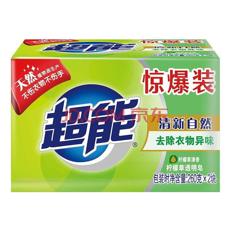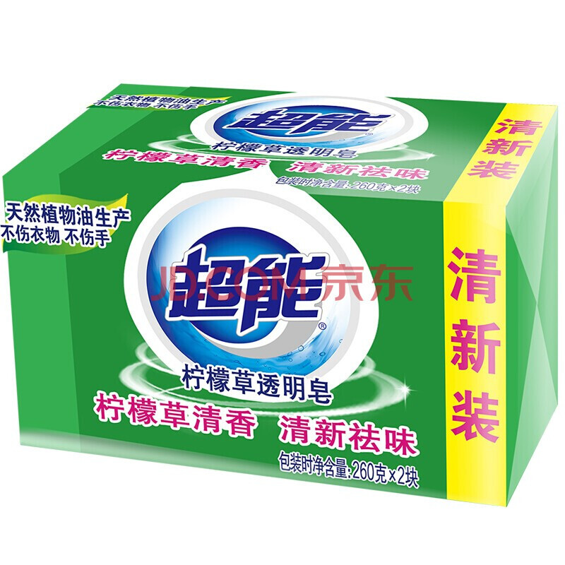 商品相册:超能 洗衣皂260g 柠檬草透明皂 自然清新去除衣物异味260g*2(2组装)第