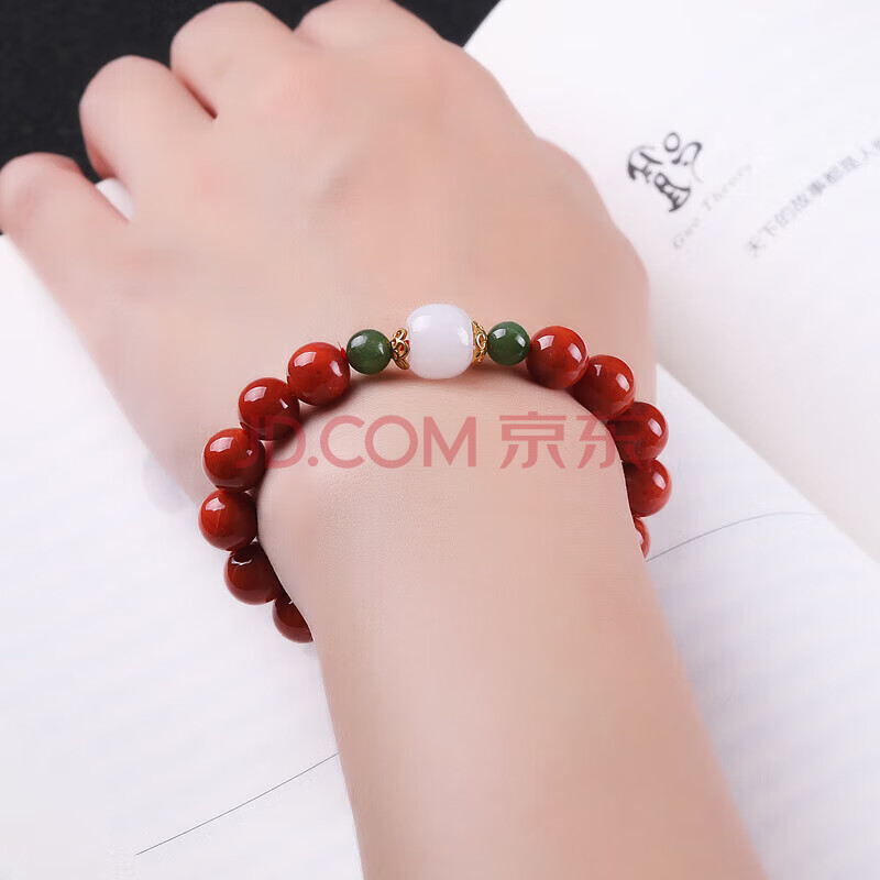 商品相册:豆蔻时光8-9mm凉山南红玛瑙手串碧玉转运珠水晶手链男女士款第