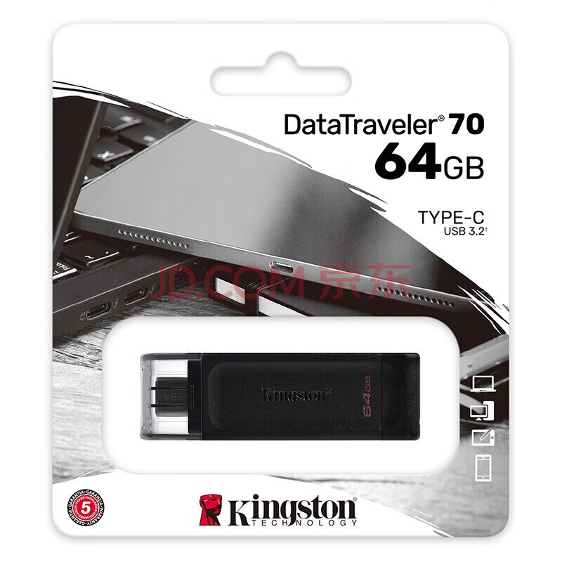 商品相册:金士顿(Kingston)64GB USB3.2 Gen1 Type-C 大容量手机U盘 DT70 黑色 适用安卓苹果 车载手机电脑通用优盘第