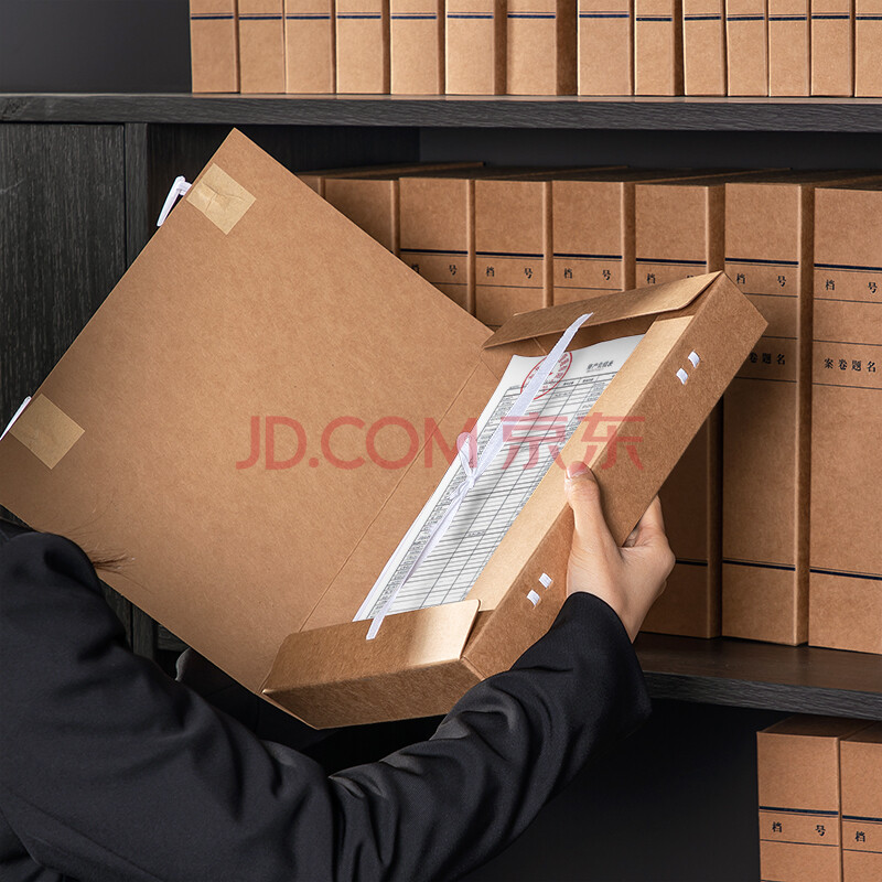 商品相册:得力(deli)10只50mm纯浆337g牛皮纸文件盒 加厚档案盒 财务用品 考试收纳 P05925第