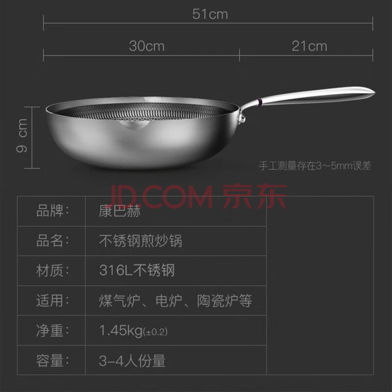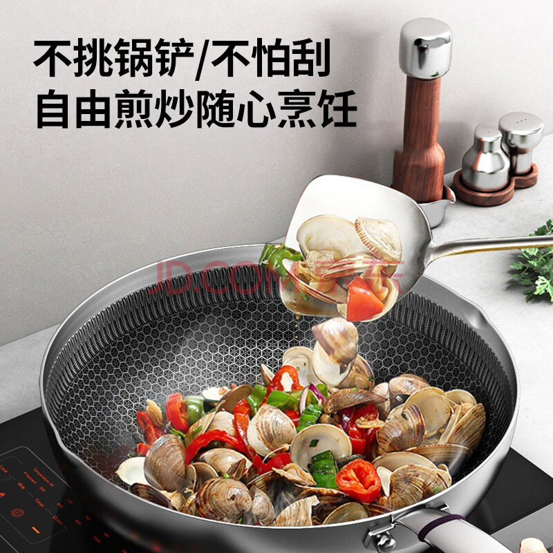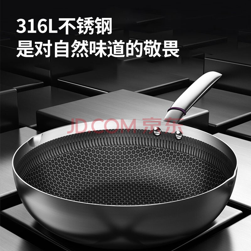 商品相册:康巴赫316L不锈钢煎炒锅不粘锅30cm家用煤气灶电磁炉通用第