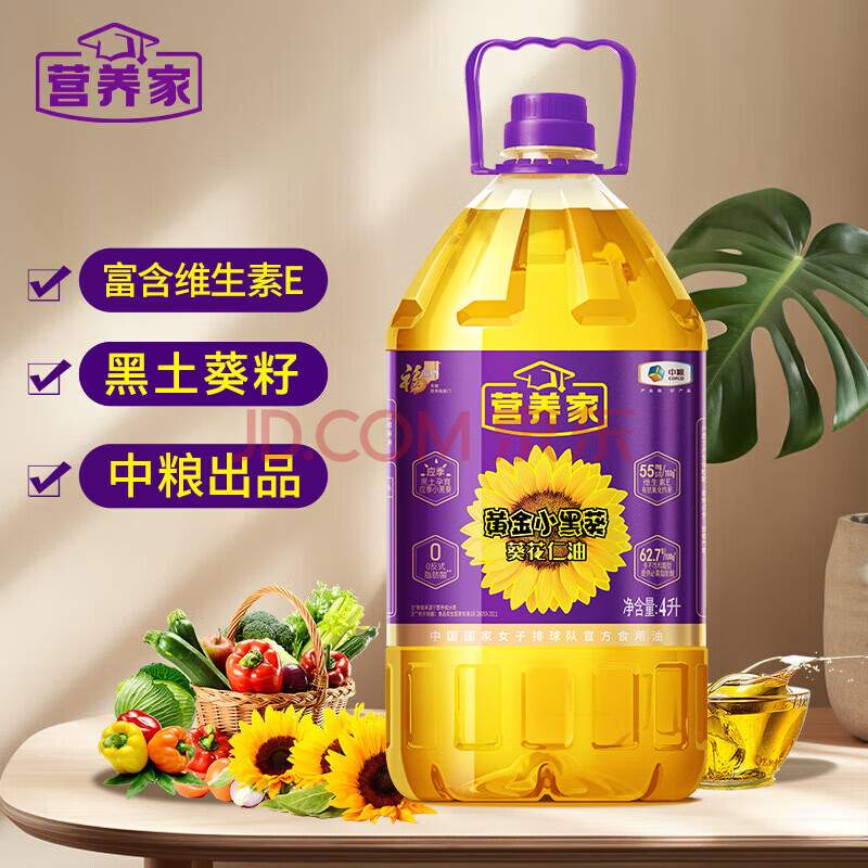 商品相册:营养家 食用油 黄金小黑葵 葵花仁油 4L 物理压榨一级 中粮出品第