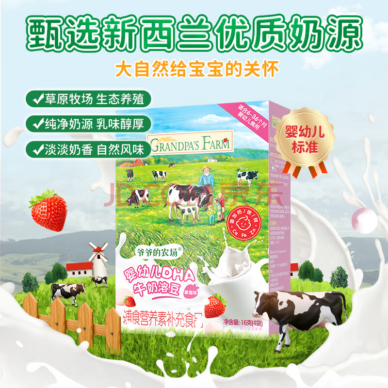 商品相册:爷爷的农场婴幼儿DHA牛奶溶豆草莓味16g儿童宝宝零食 婴儿零食6-12个月第