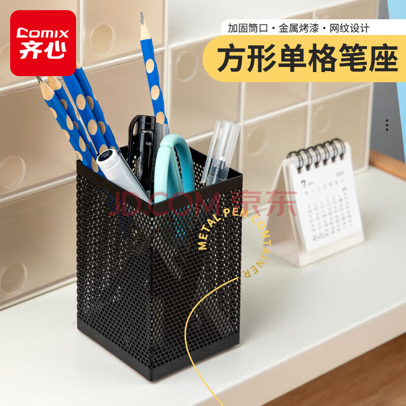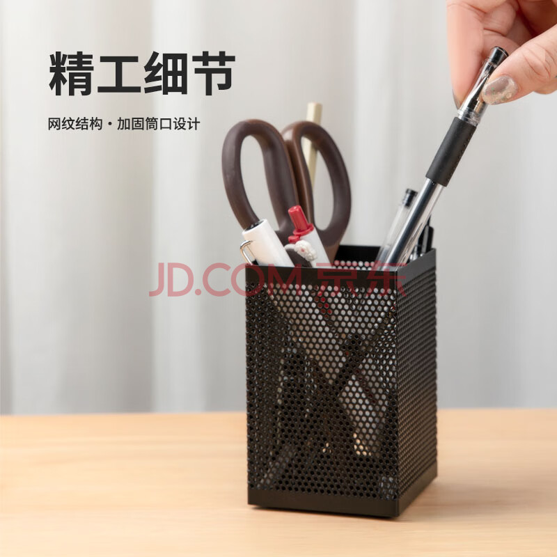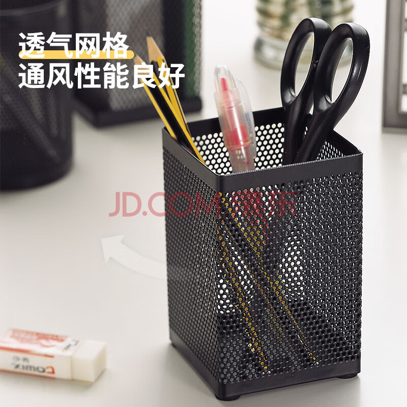 商品相册:齐心(COMIX)笔筒 金属网格 办公用品工具黑色B2003第
