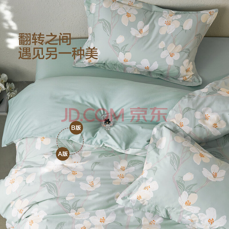 商品相册:水星家纺四件套床上纯棉100%全棉透气床单被套双人1.8米x2米床风沐花意家居馆第