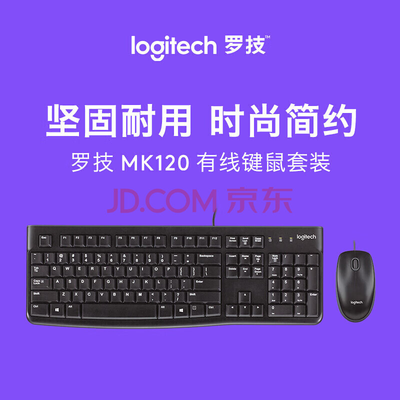 商品相册:罗技(Logitech)MK120 键鼠套装 有线键鼠套装 办公键鼠套装 电脑键盘 USB即插即用 全尺寸 黑色第