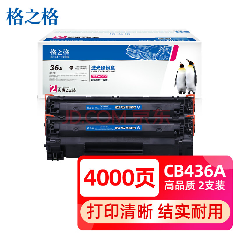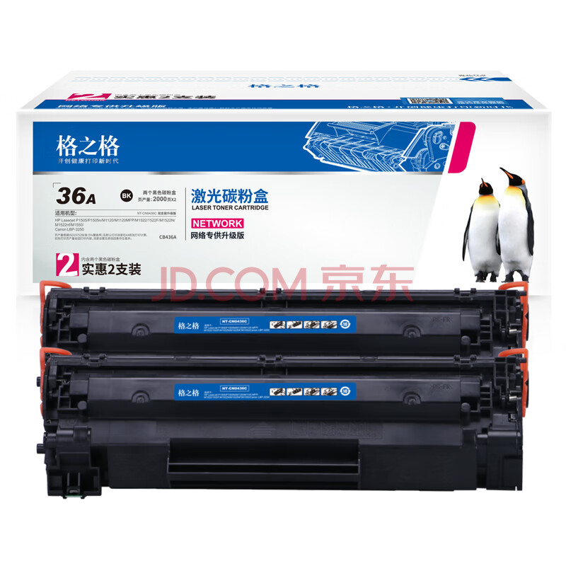 商品相册:格之格 CB436A硒鼓NT-CN0436C双支装适用惠普P1505 M1120 M1522 M1550佳能LBP3250打印机粉盒hp36A硒鼓第