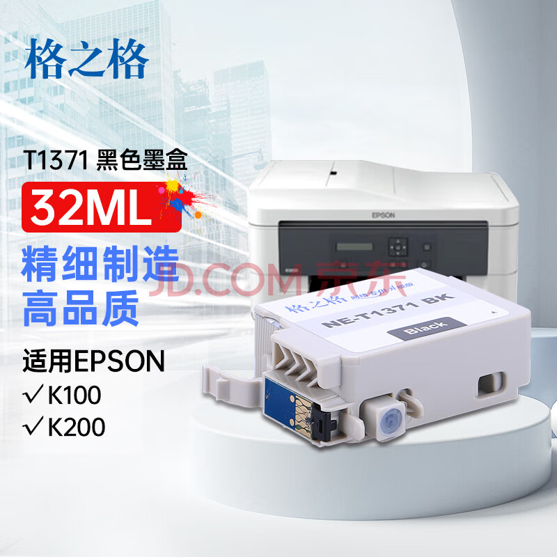 商品相册:格之格 T1371黑色墨盒NE-T1371BK适用爱普生K100 K200打印机墨盒第