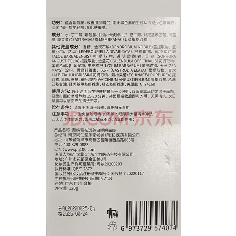 商品相册:南京同仁堂睡眠面膜免洗美白祛斑提亮肤色改善补水淡化斑点效期至26年4月第