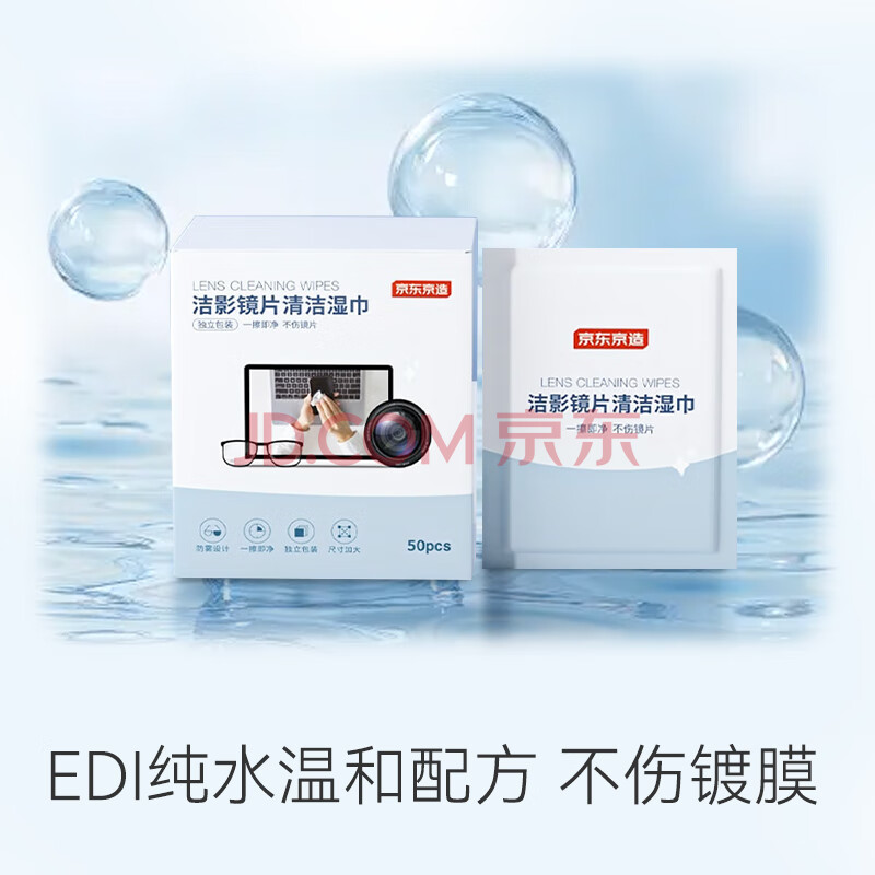 商品相册:京东京造 洁影镜片清洁湿巾50片 眼镜清洁湿巾纸 擦眼镜擦相机湿纸巾大号第