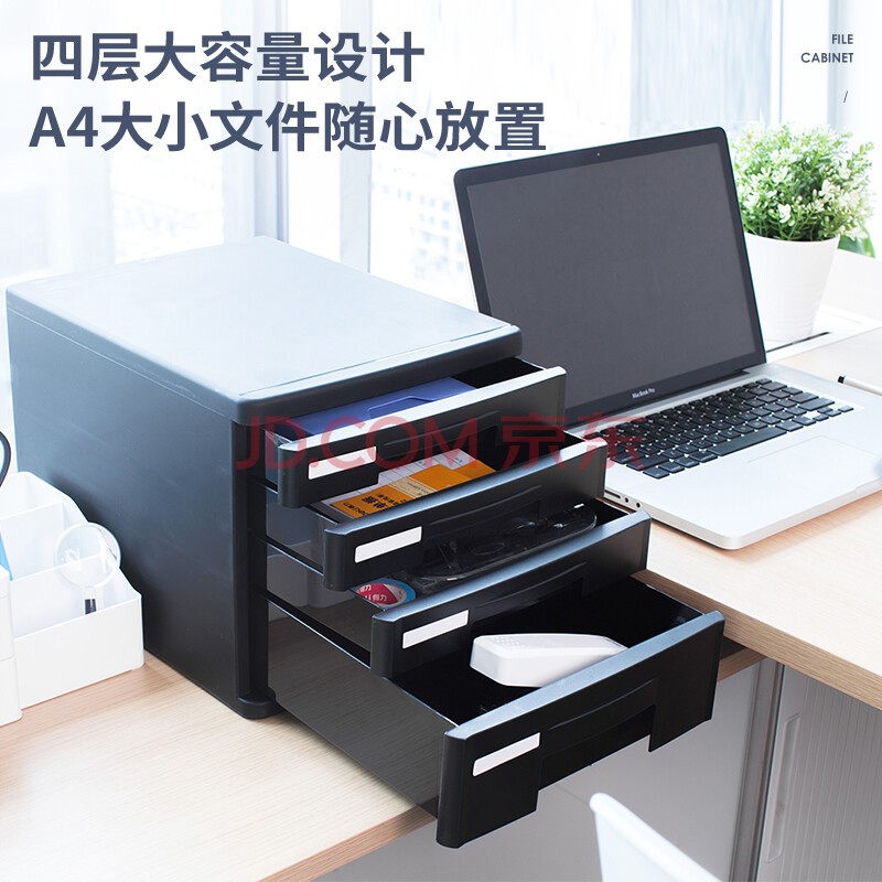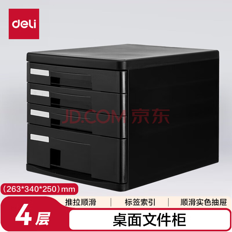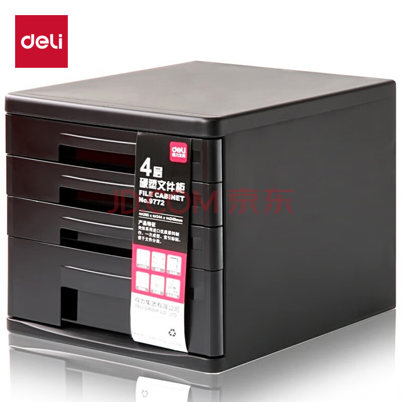 商品相册:得力(deli)4层办公桌书桌桌面收纳盒文件柜收纳柜抽屉式 A4拉手资料 带索引标签学科试卷分类收纳 黑9772A第