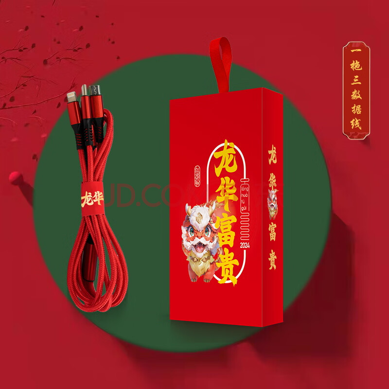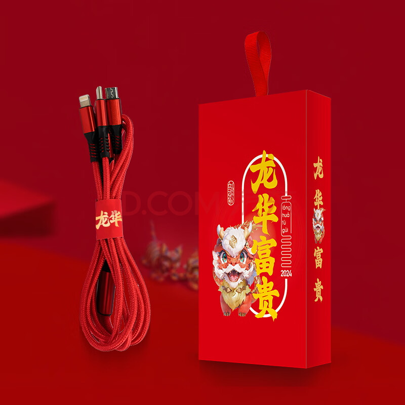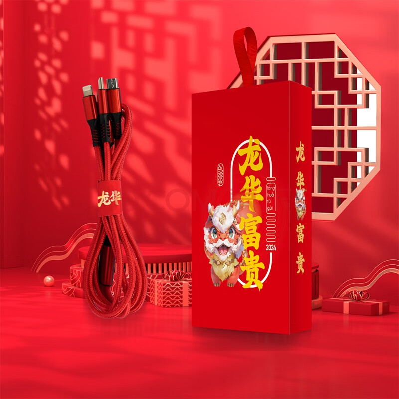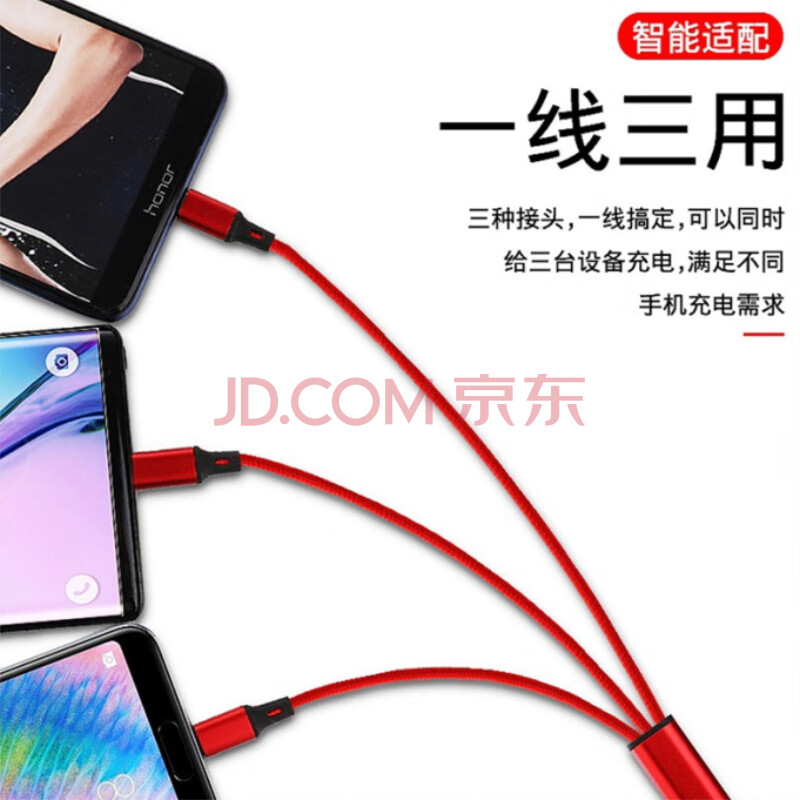 商品相册:巾菇棒 有蛇有得 三合一数据线 一拖三充电线盒装第