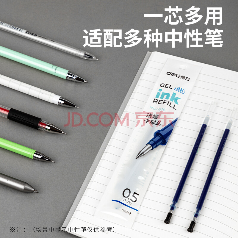 商品相册:得力(deli)0.5mm蓝色中性笔笔芯 子弹头水笔签字笔替芯 3盒共60支6916第