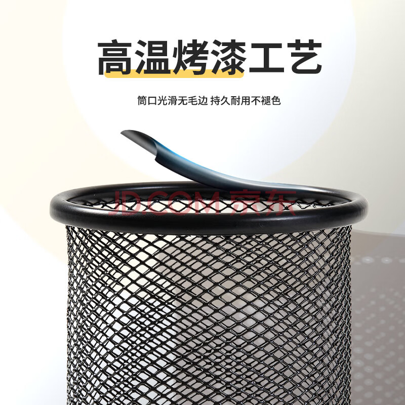 商品相册:齐心(COMIX)金属网纹圆形笔筒办公收纳 黑色金属简约创意桌面收纳盒 办公文具工具B2259第