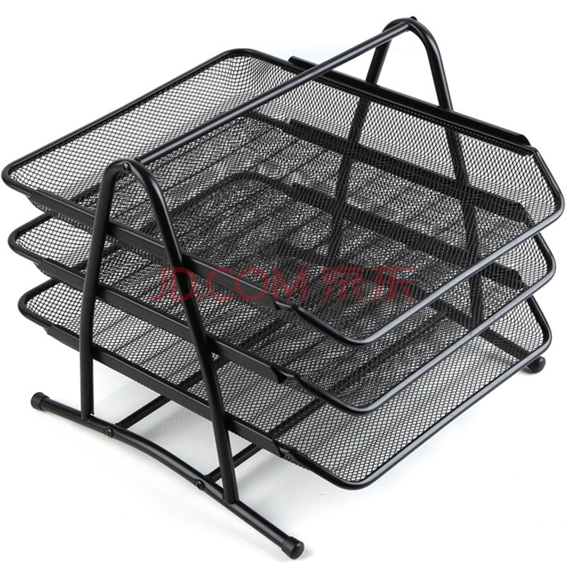 商品相册:齐心(Comix)商务三层金属文件盘 托盘可前后移动 高质文件座 办公用品 黑色B2163第