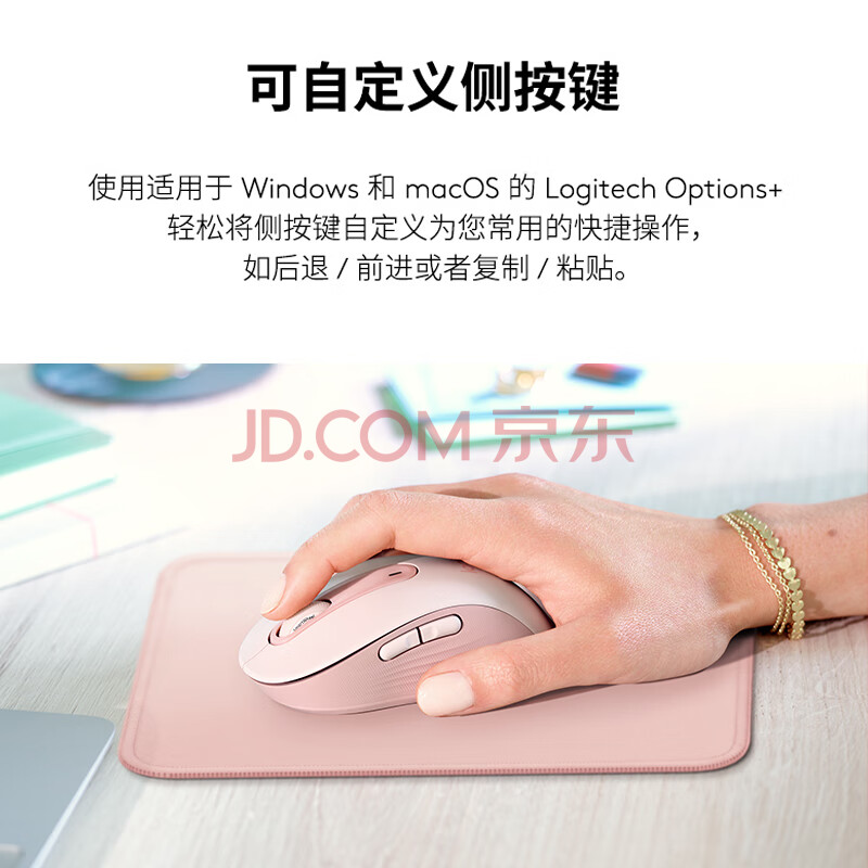 商品相册:罗技(Logitech)M750M 通用版鼠标 无线鼠标 静音鼠标 对称鼠标 粉色 带Logi Bolt USB接收器第