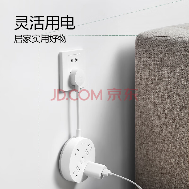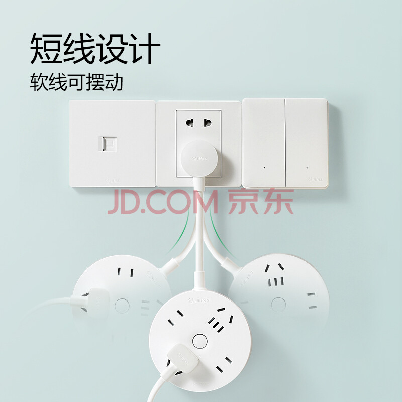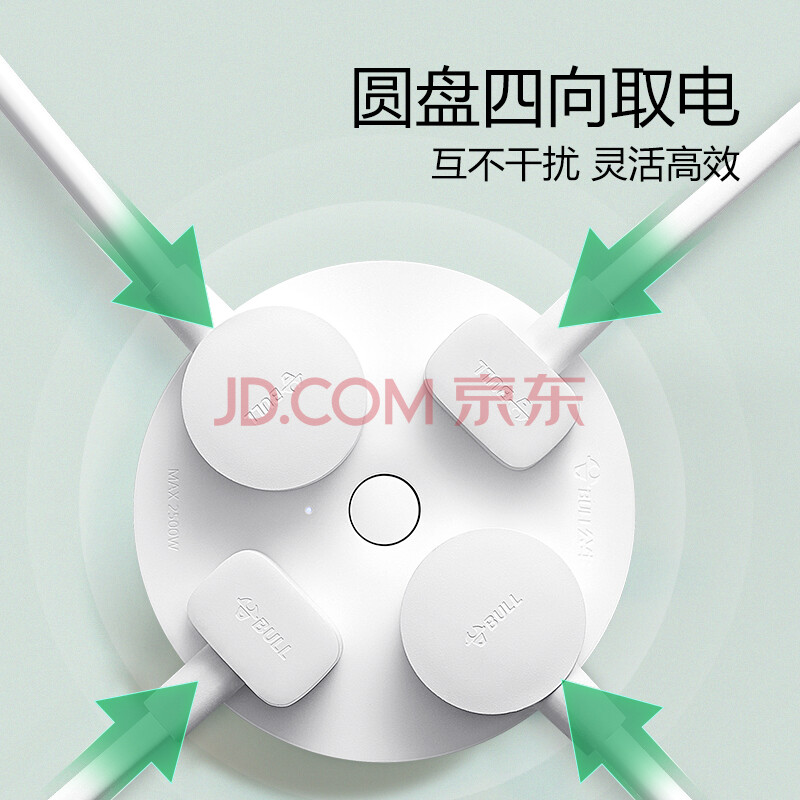 商品相册:公牛(BULL)插座/插线板/插排/排插/拖线板 转换插头 总控一转四 圆形插座全长0.2米 GN-R2220第