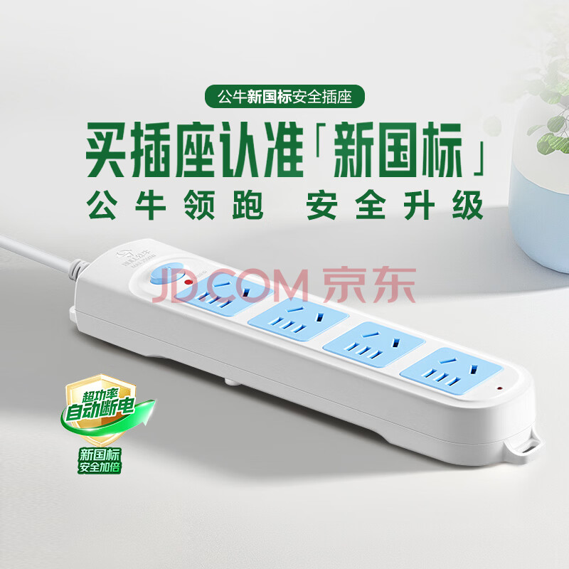 商品相册:公牛(BULL)插座/插线板/插排/排插/接线板/拖线板 4位总控全长1.8米 GN-601第