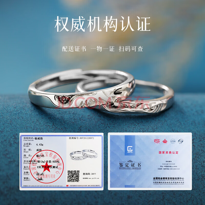 商品相册:曼禾(MANHE)S925银戒指情侣对戒一对求婚钻戒开口女款男士女生尾戒情人节礼物第