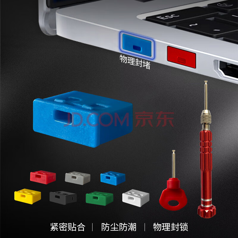 商品相册:索厉 USB端口锁 可拆卸式USB物理安全锁 封口塞防尘塞/1把大工具+1把小工具+7色各1个体验装/20080第