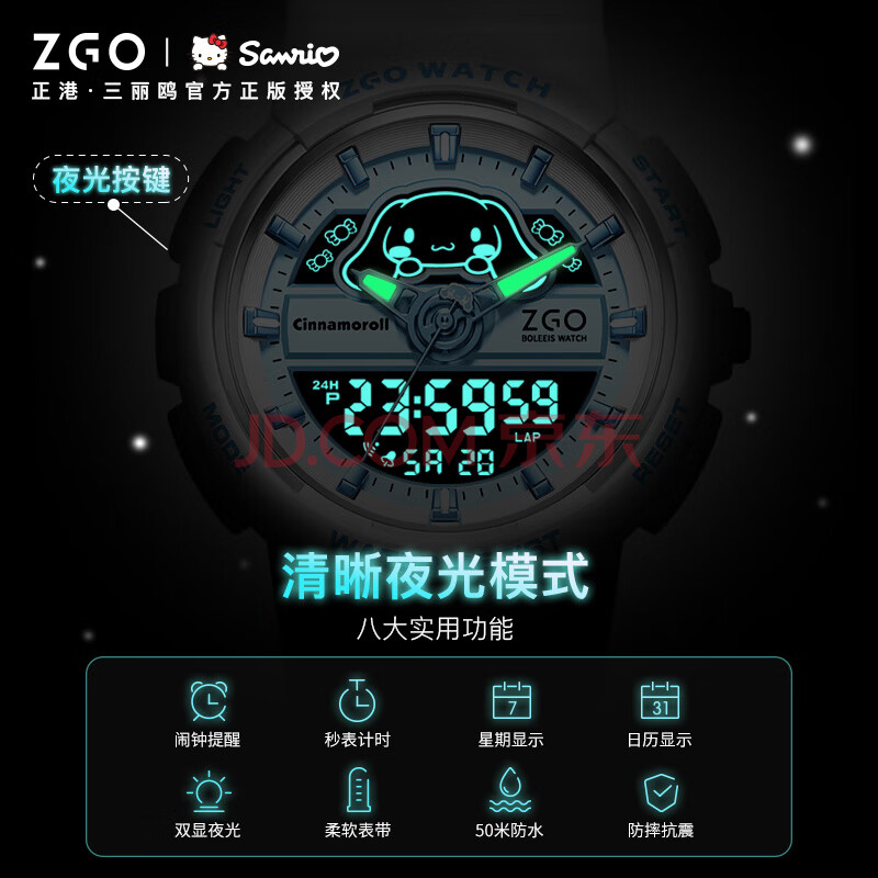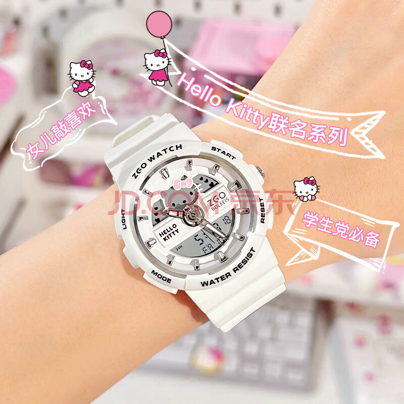 商品相册:正港(ZGO)三丽鸥 手表女学生防水电子表初中生手表女孩生日礼物 863玫白第