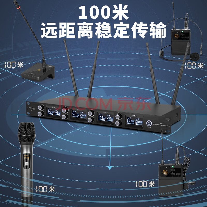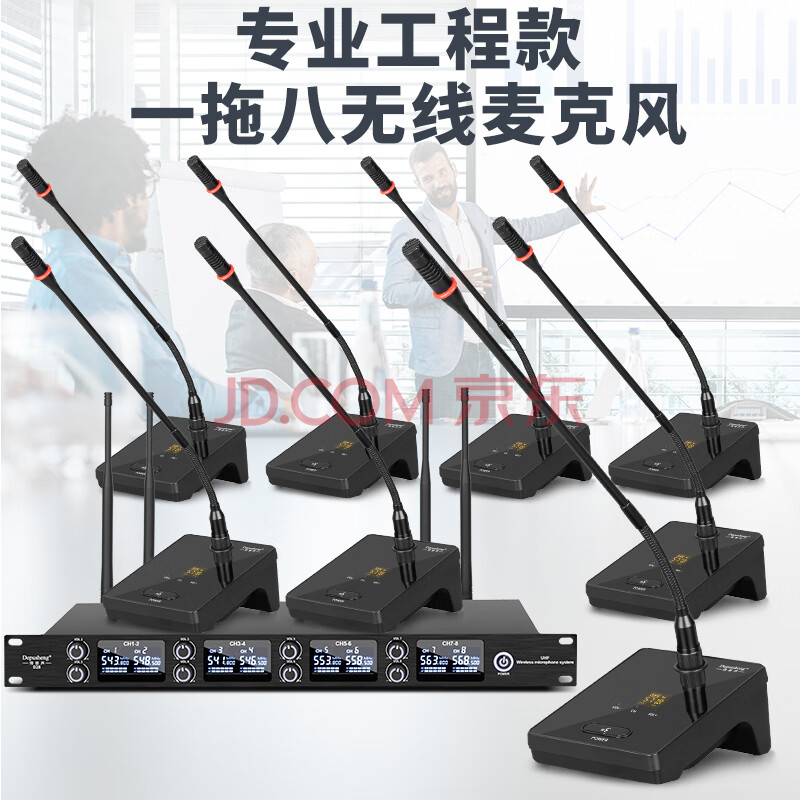 商品相册:得普声一拖八无线会议麦克风 专业演讲会议室语音通话收音座式调频桌面鹅颈话筒工程级防啸叫D28第