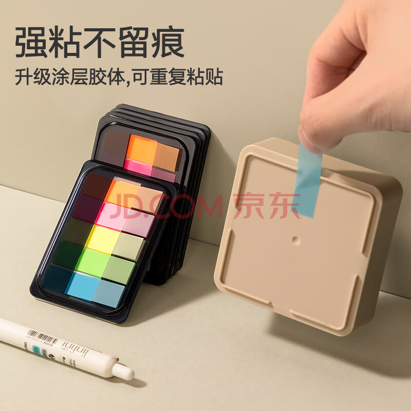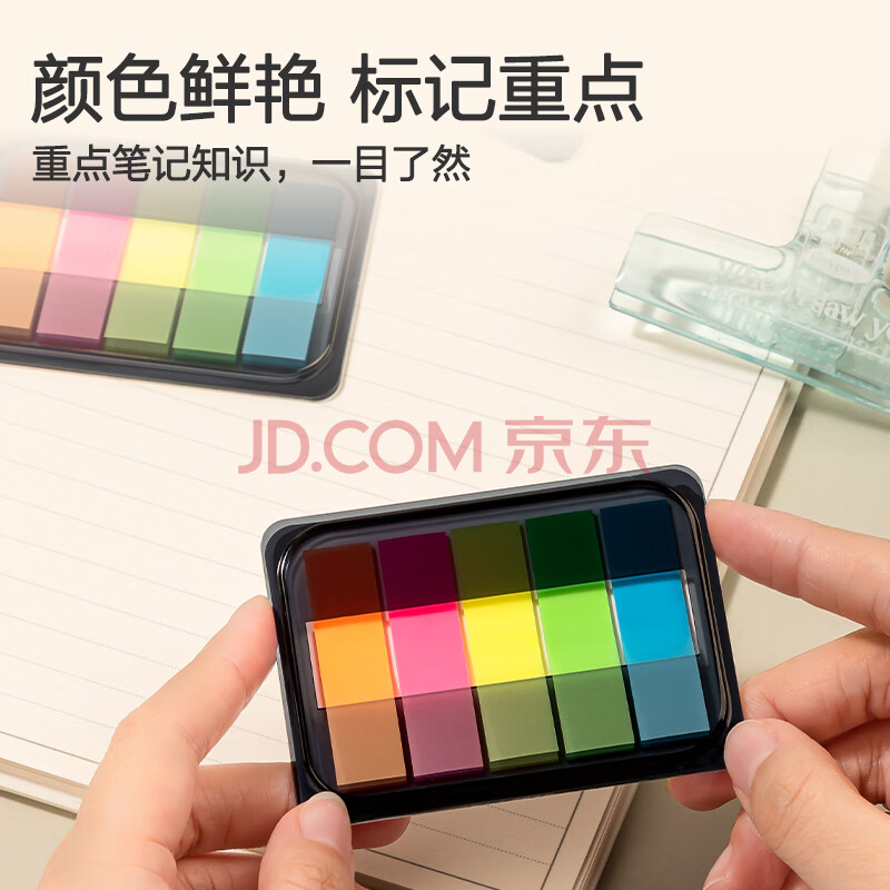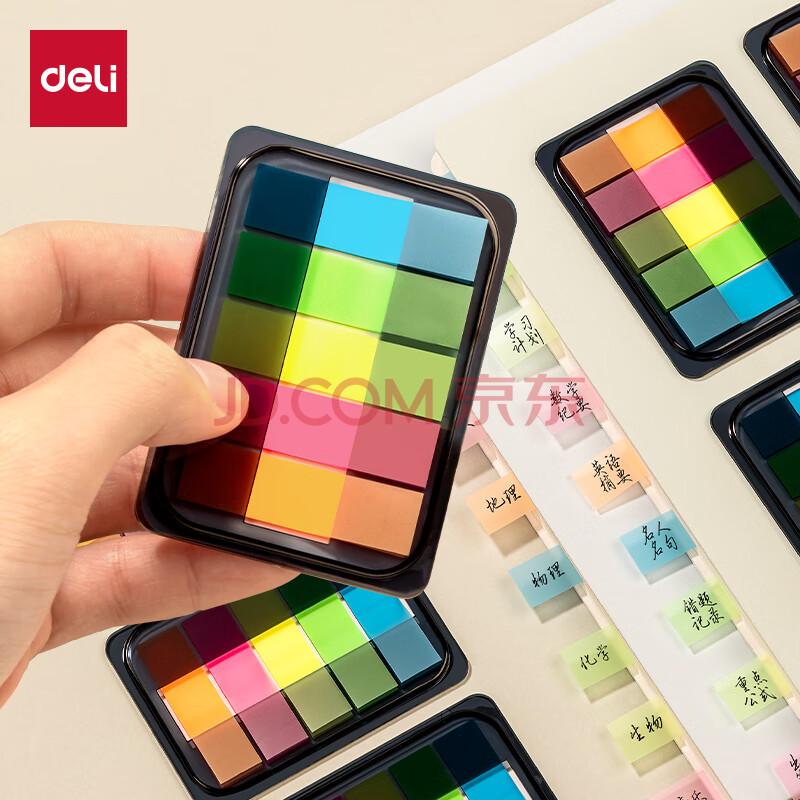 商品相册:得力(deli)100张5色荧光膜指示标签贴44*12mm抽取式便利贴便签条记事贴9060第