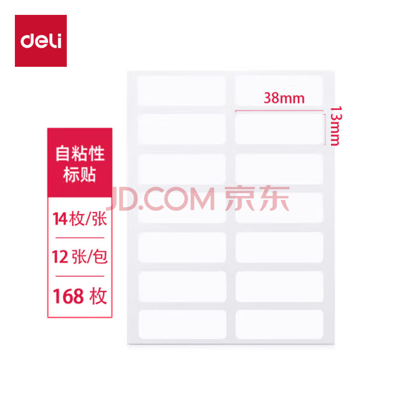 商品相册:得力(deli)168枚13×38mm不干胶标签贴纸便利贴自粘性标贴 14枚/张 7180第