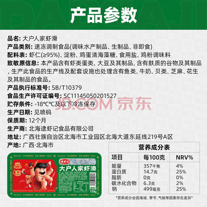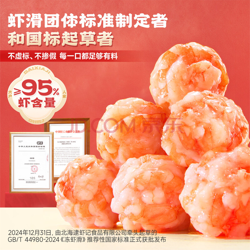 商品相册:逮虾记0保水剂无添加虾滑150g*2火锅虾滑纯虾肉火锅食材95%含量京东自营第