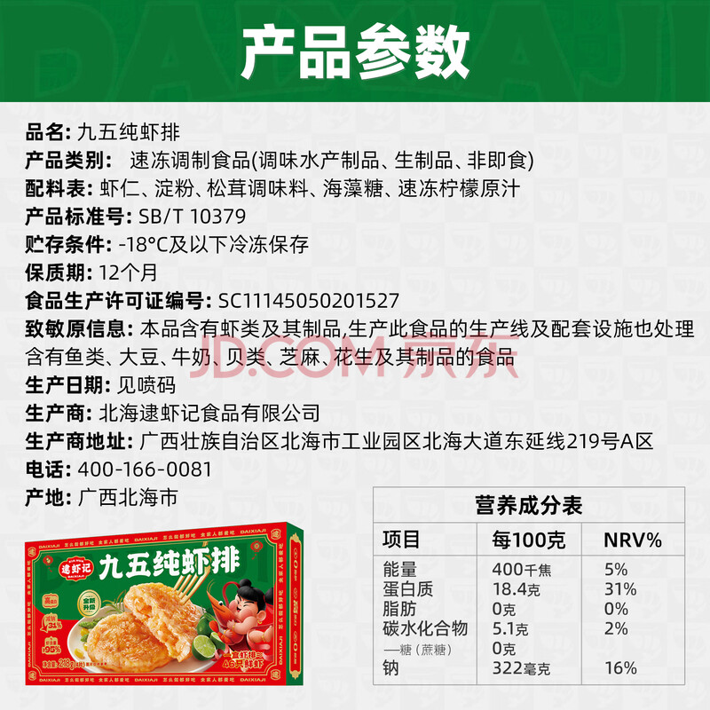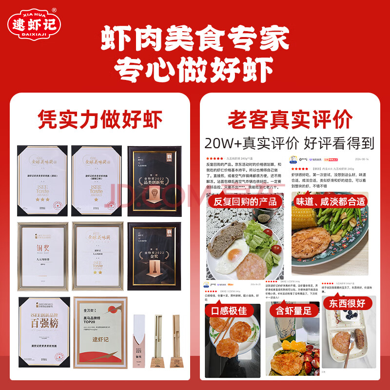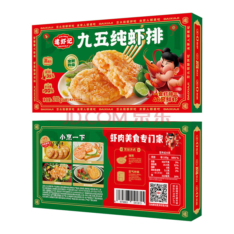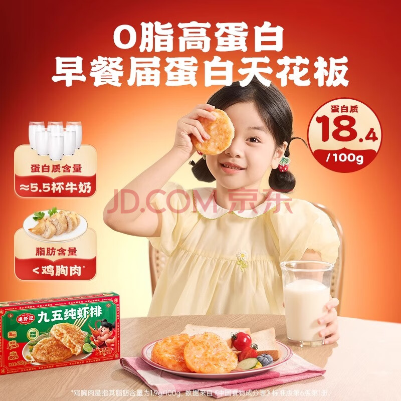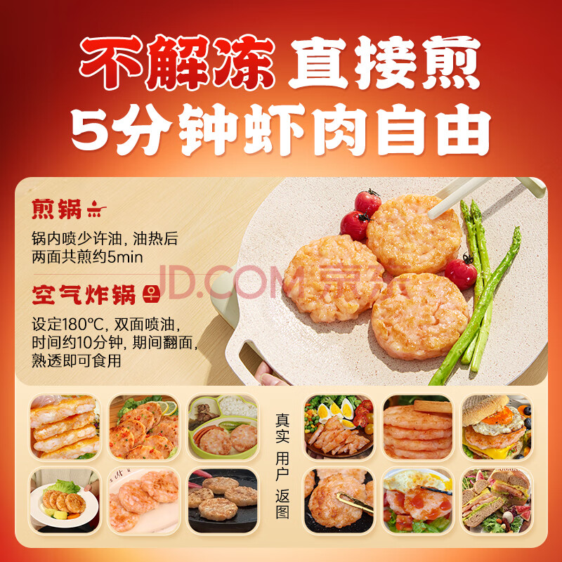 商品相册:逮虾记虾饼虾排儿童早餐半成品京东自营虾仁218克95%含量鲜虾饼预制菜第