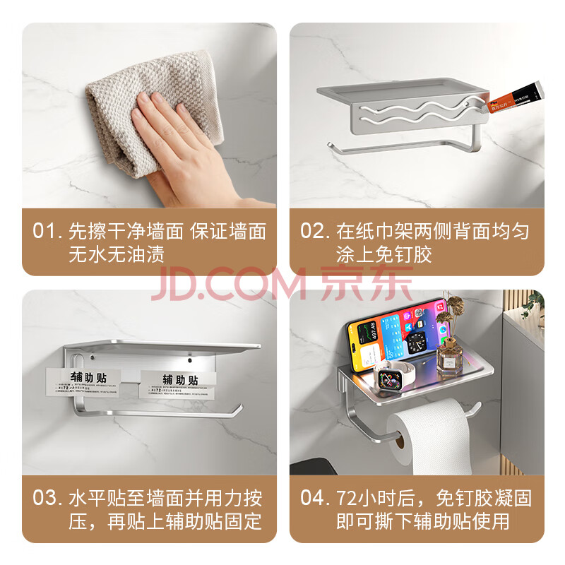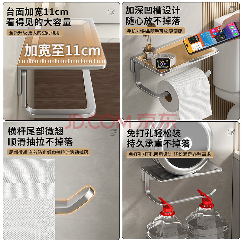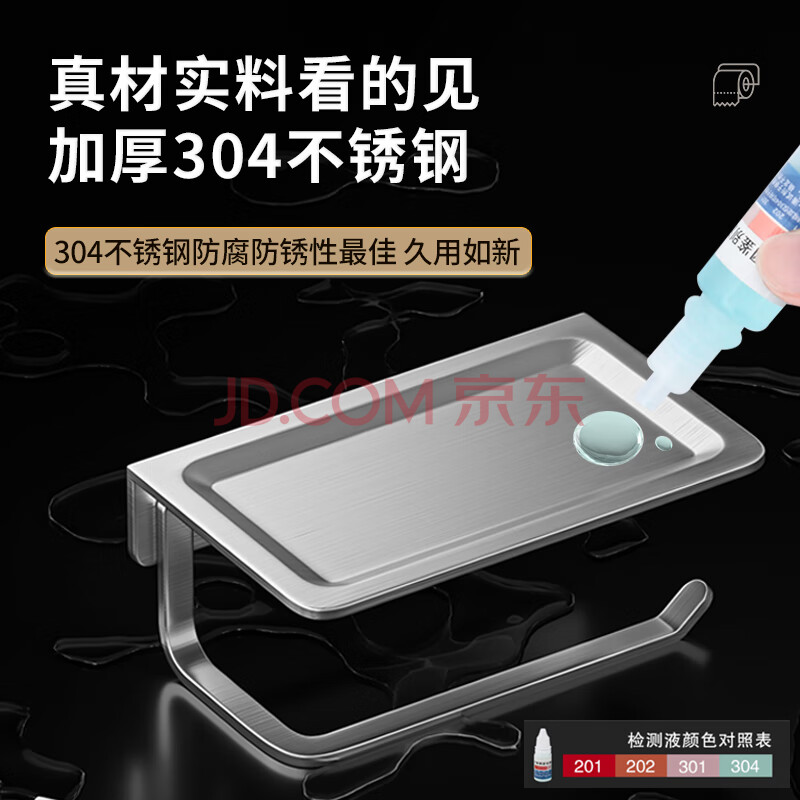 商品相册:百字卫生间纸巾架304不锈钢厕所卫生纸架浴室置物架免打孔卷纸抽纸架第
