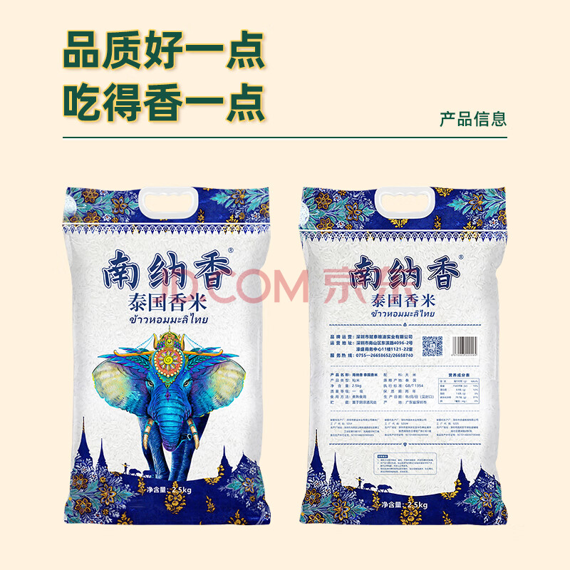 商品相册:南纳香 泰国香米5斤大米进口泰国米长粒香米2.5kg 大象系列一级大米团购第