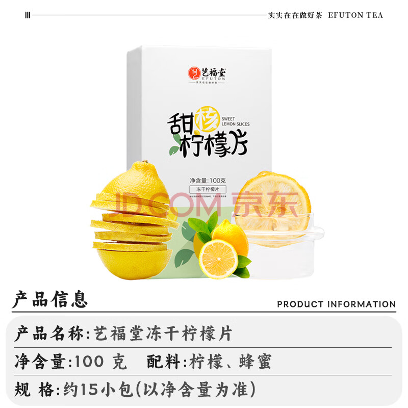 商品相册:艺福堂花草茶花冠甜核冻干蜂蜜柠檬片100g 大片独立包装水果花茶搭枸杞第
