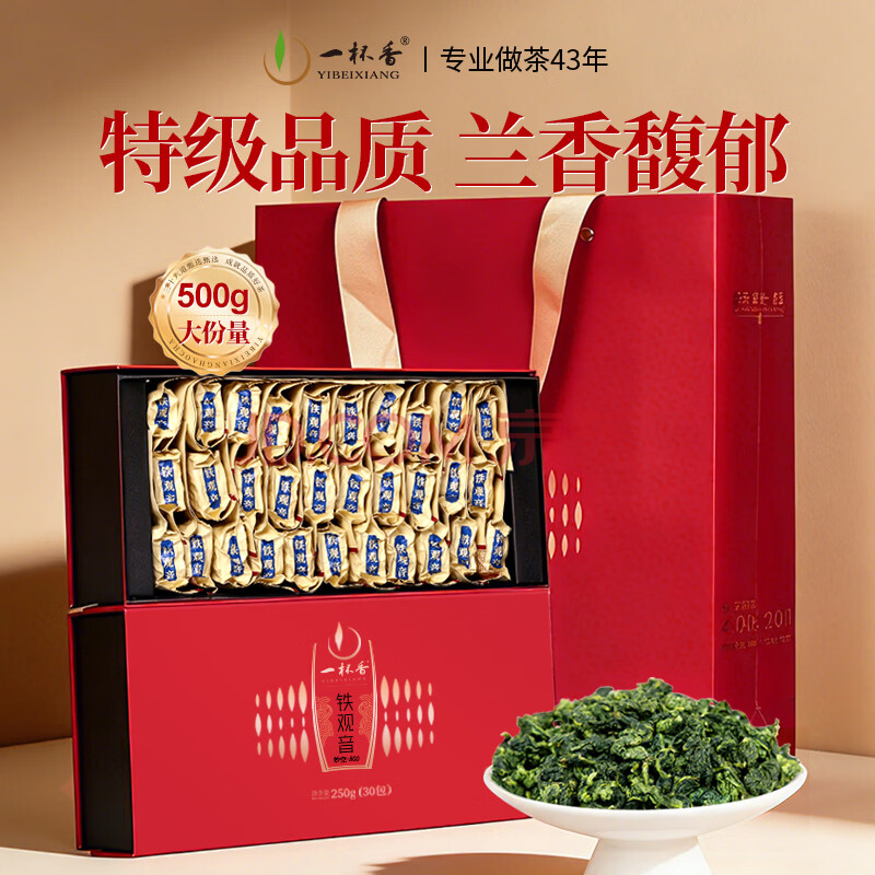 商品相册:一杯香茶叶安溪乌龙茶铁观音清香型特级500g礼盒装送礼自己喝散装茗茶第