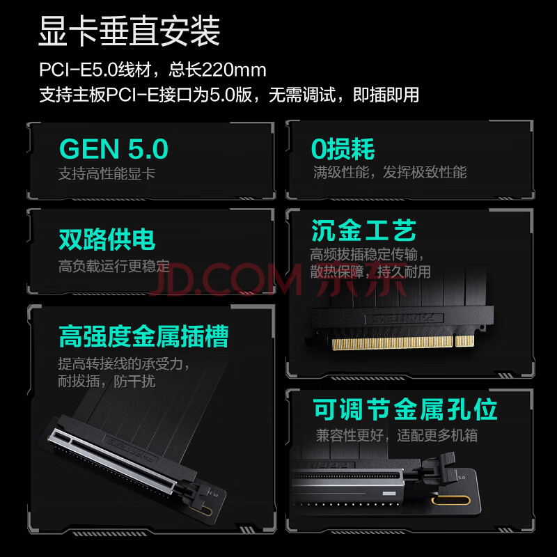 商品相册:追风者(PHANTEKS)PCI-E 5.0 黑显卡竖装支架套件/7槽位ATX机箱升级/220mm延长线/EMI防电磁干扰/5090第