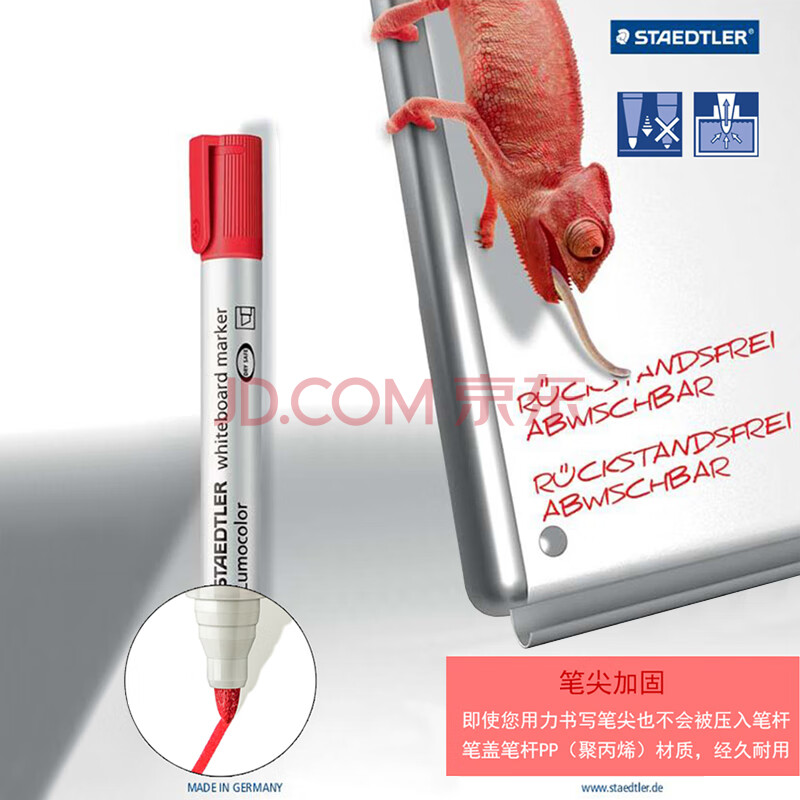 商品相册:施德楼(STAEDTLER)可擦白板笔 2mm防干型彩色记号笔 办公用品会议笔-红色3支装351-2第